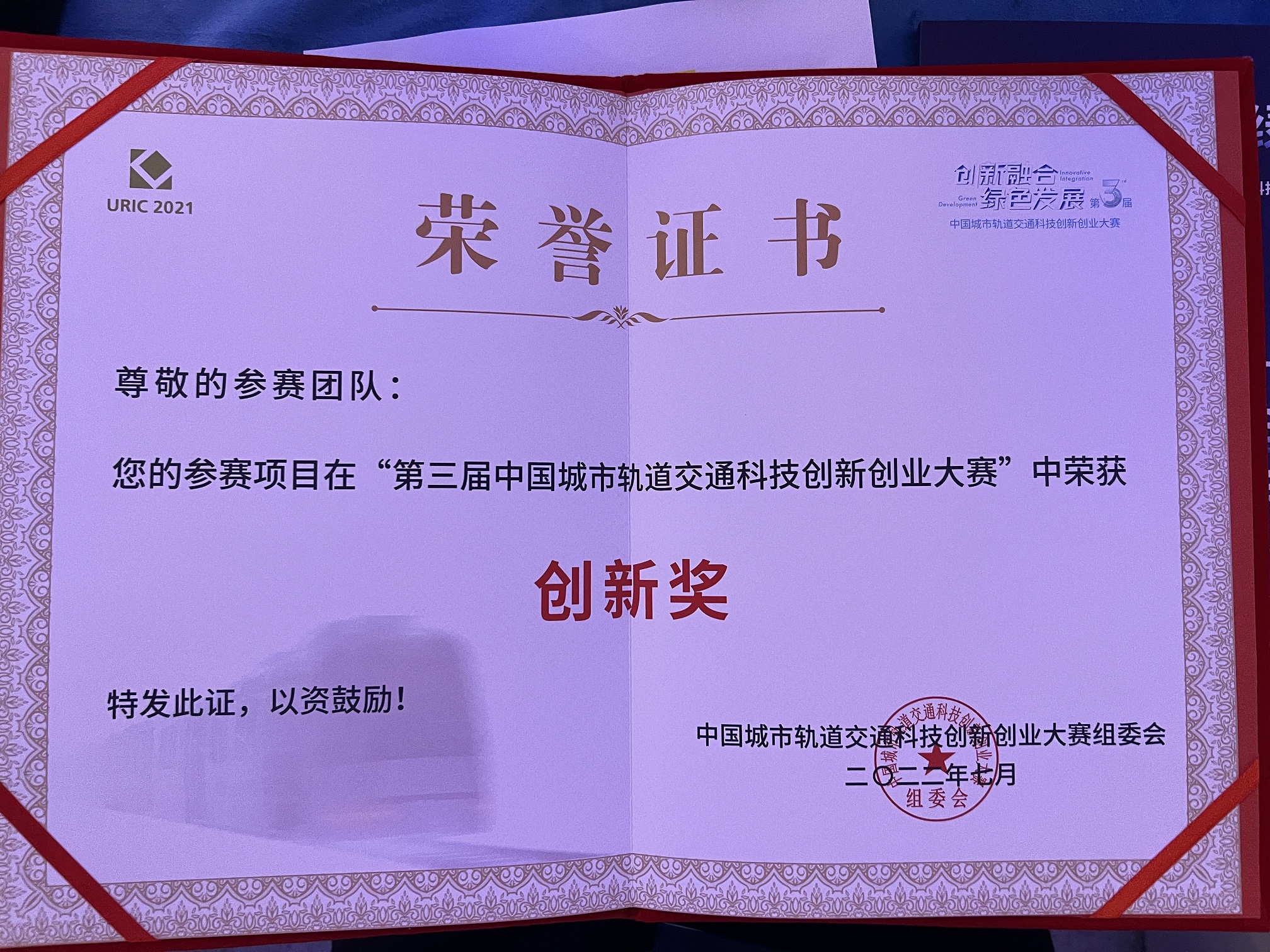 best365足球官网喜获第三届中国轨道交通科技创新创业大赛创新奖