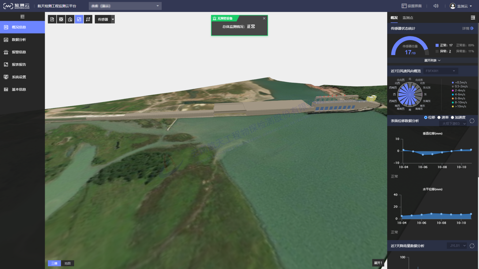 水库安全监测系统利用物联网、大数据等技术,实现水库的降雨量、水位,大坝的变形、渗流、应力应变、图像等参数进行全天候监测,为水库的安全管理与运行调度提供及时准确的信息,为相关部门和领导科学决策提供依据,提高水库工程管理的效率和质量。